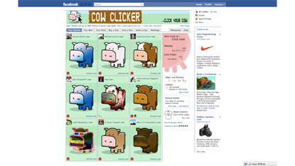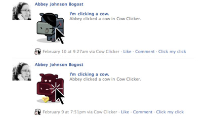 Or through stubborn expansions through which I tried to find warmth in Cow Clicker's shadow, a folly that has nigh suffocated me in cud: the Cowclickification platform with its API and Cow Clicker Connect widget; Moogle, the bovine search engine; Cow Clicker Blitz, in which players rapidly click cows instead of gems; the iPhone child exploitation game My First Cow Clicker; and the world-changing Cowclicktivism initiative, which converts virtual clicks into real cows for the third world.